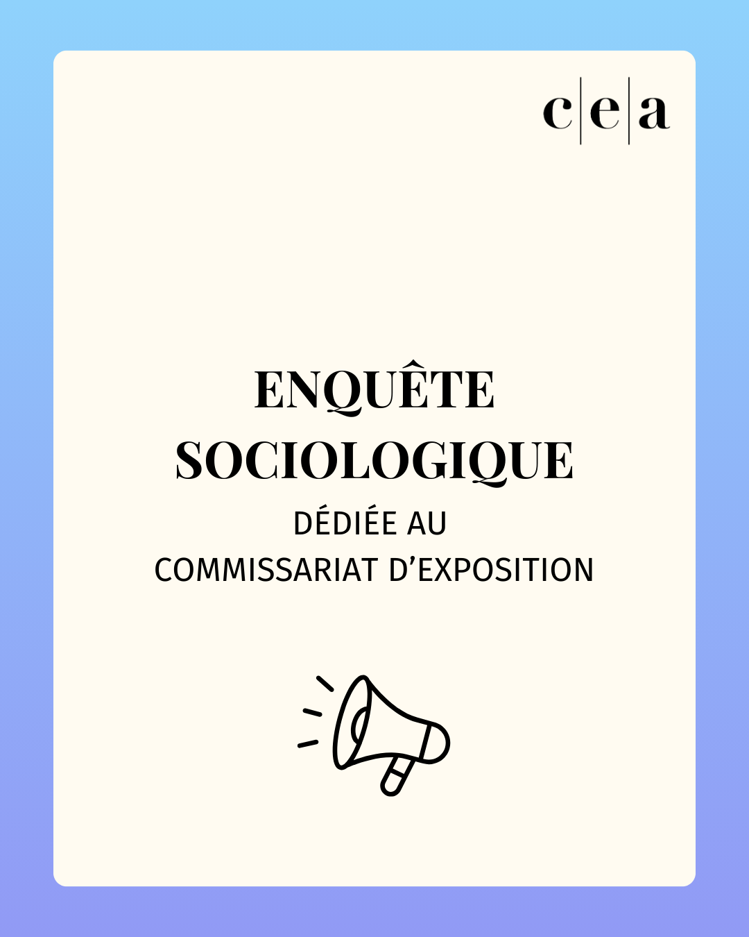 Le métier de commissaire d’exposition est en perpétuelle évolution, s’adaptant aux évolutions sociales, politiques, économiques et numériques. En 2009, C-E-A lançait une première enquête sociologique pour dresser un portrait de la profession et partager les réalités inhérentes au métier. Cette première étape sociologique doit aujourd’hui être actualisée, affinée et complétée en sollicitant un panel élargi de commissaires d’exposition exerçants en France.