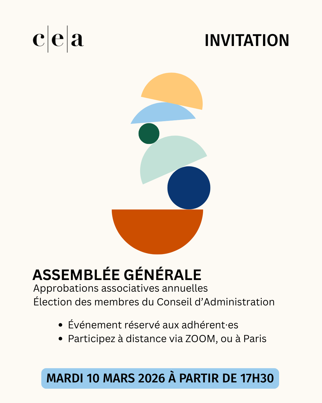 Nous avons le plaisir de vous inviter aux instances associatives le mardi 10 mars 2026 à partir de 17h30, à la Cité Internationale des Arts de Paris et en visio.