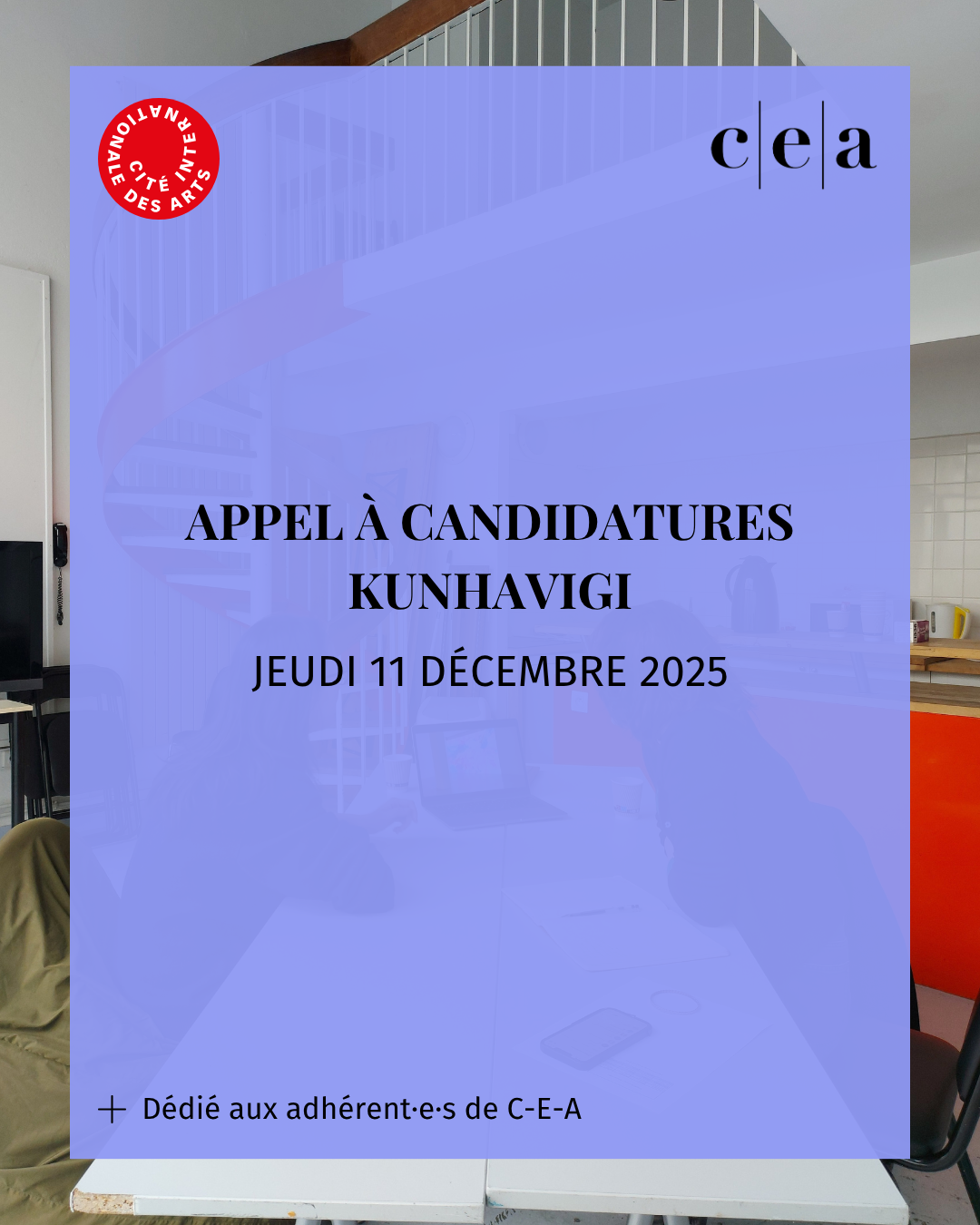 Pour la deuxième année du programme Kunhavigi, la Cité internationale des arts à Paris sollicite les membres de C-E-A pour conduire des rendez-vous individuels de 45 minutes entre artiste et commissaire.