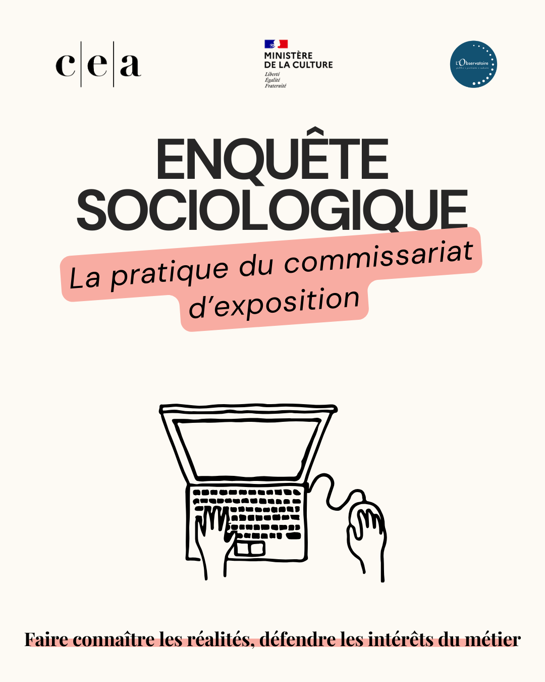 Le métier de commissaire d’exposition est en perpétuelle évolution, s’adaptant aux évolutions sociales, politiques, économiques et numériques. En 2009, C-E-A lançait une première enquête sociologique pour dresser un portrait de la profession et partager les réalités inhérentes au métier. Cette première étape sociologique doit aujourd’hui être actualisée, affinée et complétée en sollicitant un panel élargi de commissaires d’exposition exerçants en France.