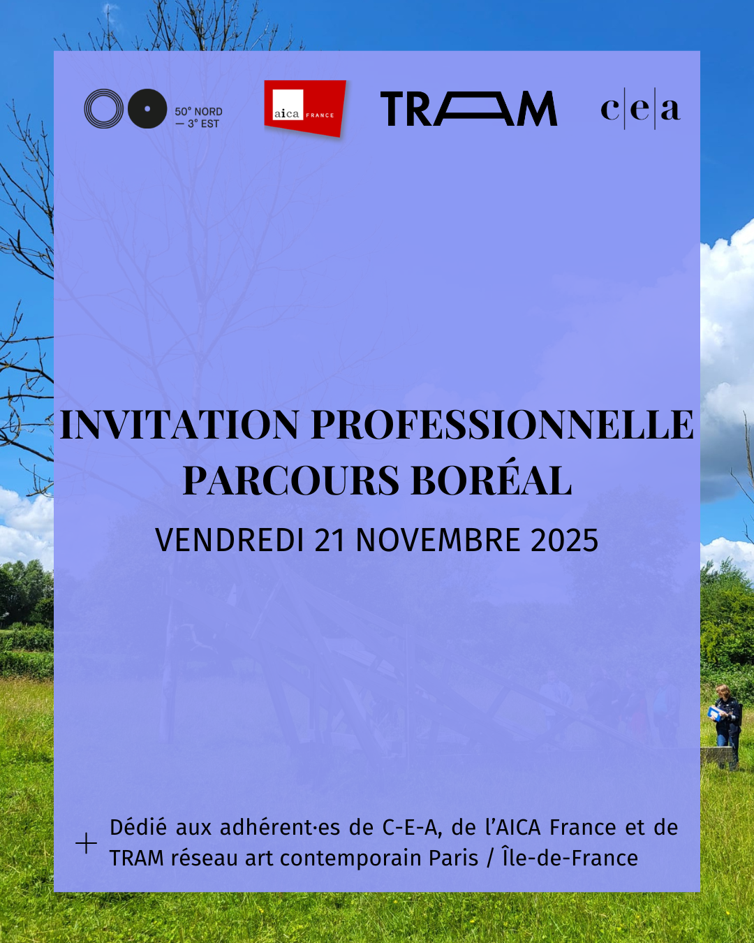 s’associe à C-E-A, Tram et L’AICA-France pour la programmation de son parcours Boréal 2025, journée privilégiée à destination des professionnel•les des arts visuels.