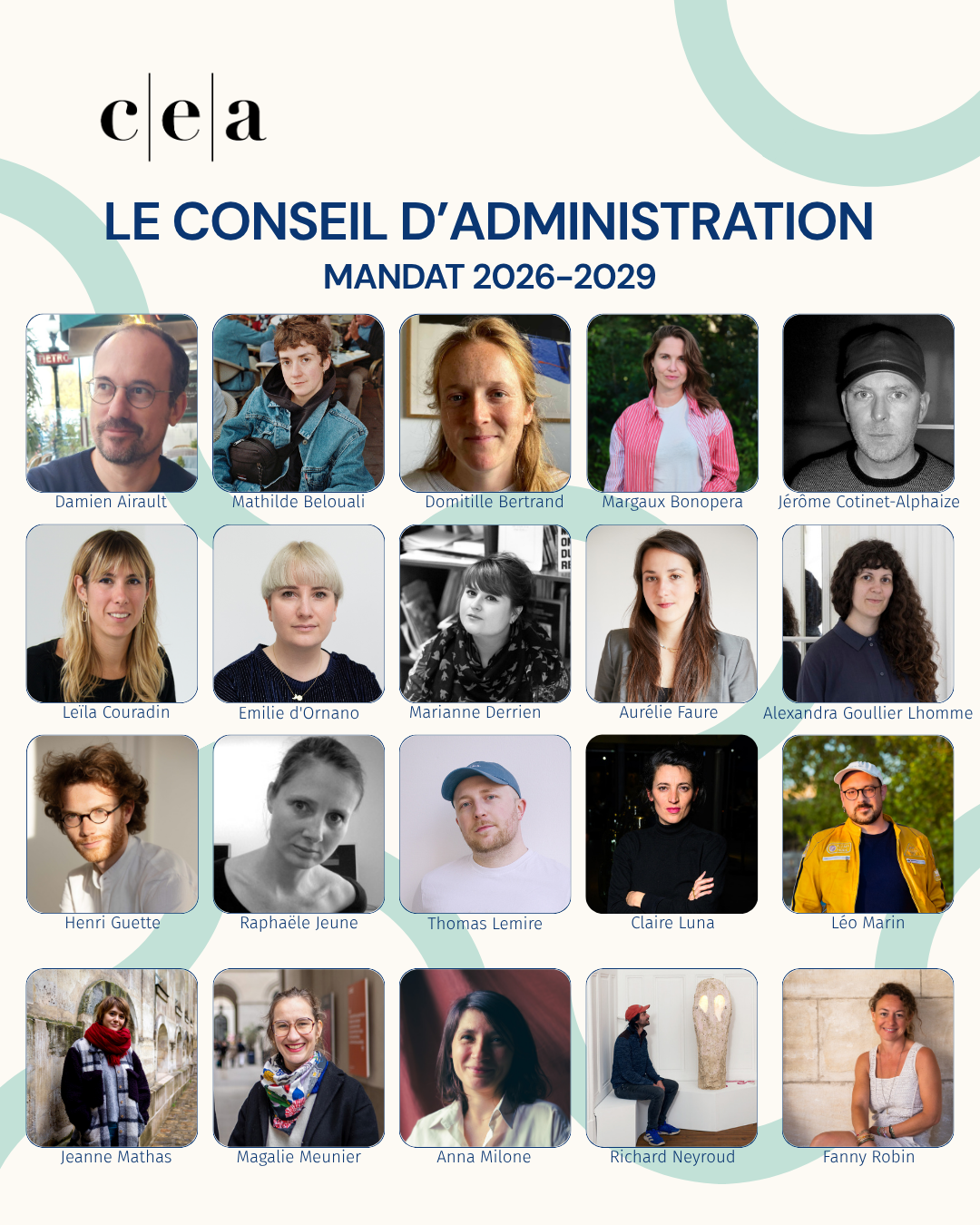Le Conseil d’Administration 2026-2029 se compose comme suit :